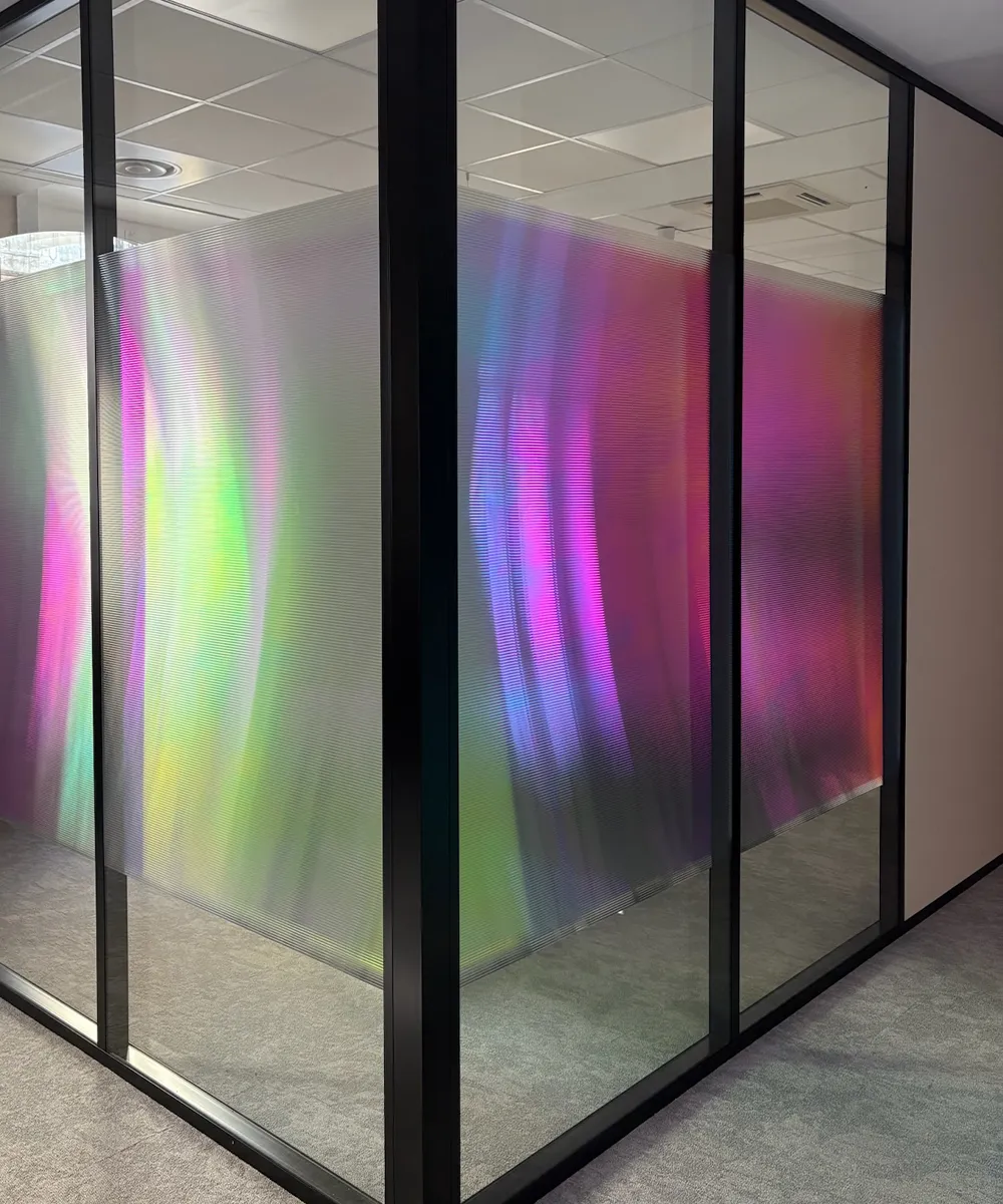 La vitrophanie est idéale pour habiller vitrines et cloisons tout en conservant la luminosité. Elle permet de diffuser un message, afficher un logo, créer des motifs graphiques ou structurer visuellement un espace.