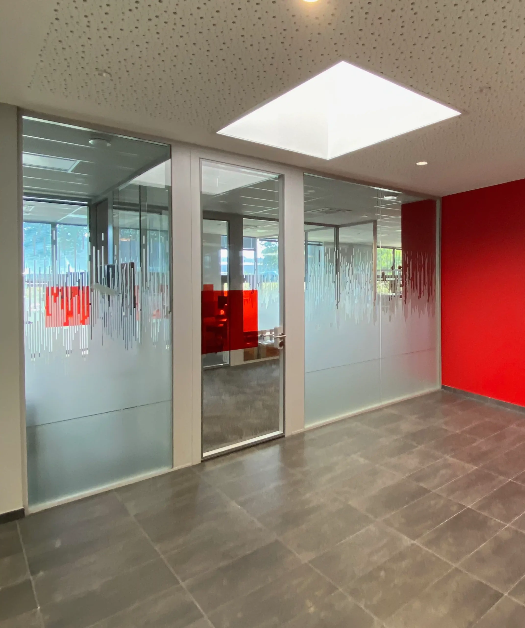 Les surfaces vitrées d’un siège social sont un formidable terrain de jeu pour la rénovation sans travaux. La vitrophanie permet de filtrer les vues, de renforcer la confidentialité, de structurer visuellement les espaces et d’intégrer des motifs en cohérence avec l’identité de l’entreprise. Les films décoratifs et vitrophanie peuvent être dépolis, colorés, texturés ou entièrement personnalisés, offrant un équilibre entre intimité, esthétique et confort visuel. Ils se posent directement sur les vitrages existants et peuvent être remplacés ou actualisés en fonction de l’évolution de la marque.