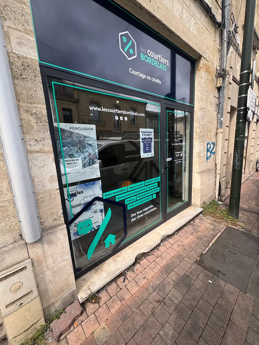 2. Vitrophanie + Enseigne – Les Courtiers Bordelais