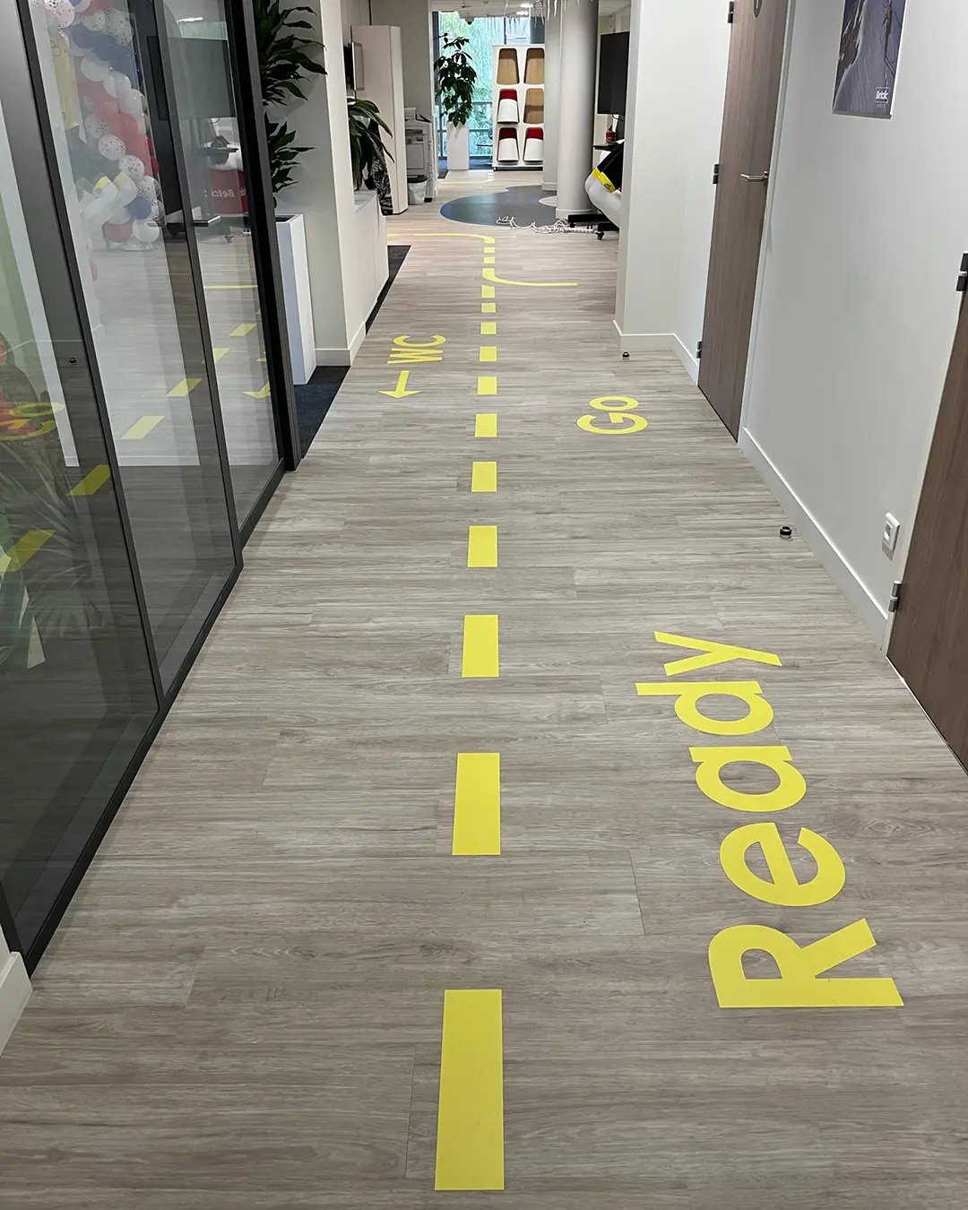 Vitrophanie et marquage au sol : structurer les espaces sans travaux